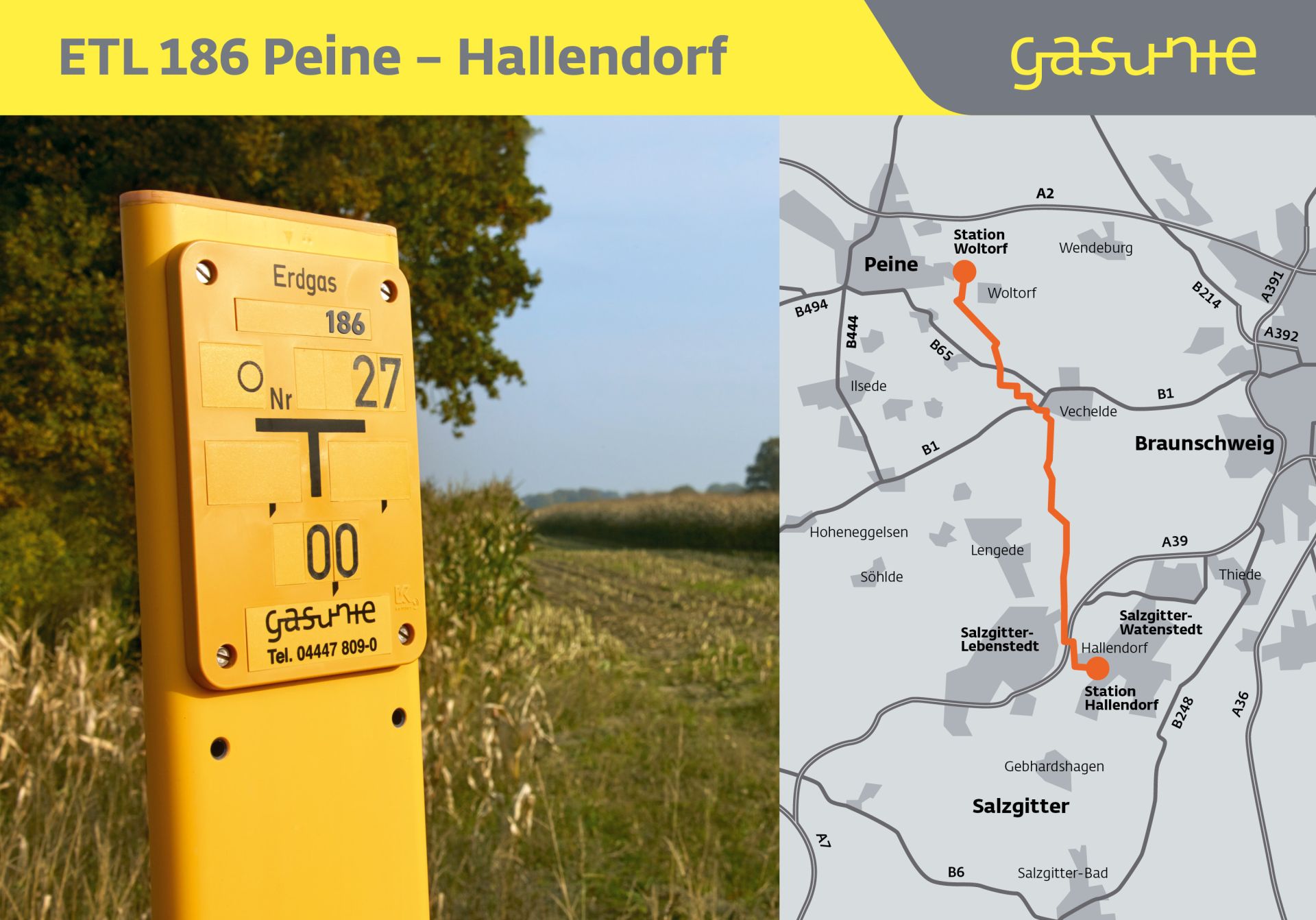 Im November 2025 startet das Unternehmen mit dem Rechtserwerb, auf zwei Informationsveranstaltungen in Peine und Salzgitter stellt Gasunie den betroffenen Grundeigentümern und Bewirtschaftern die mit dem Landvolk Niedersachsen abgestimmte Rahmenvereinbarung vor. Damit wollen wir den Grundstein legen für eine langfristige und vertrauensvolle Zusammenarbeit zwischen Landwirtschaft und Energieunternehmen - denn Lösungen für eine klimaschonenden und zuverlässigen Energieversorgung lassen sich nur gemeinsam entwickeln. Ein Jahr zuvor hatte das Unternehmen mit Baugrunduntersuchungen für die neue Leitung zwischen Peine und Salzgitter begonnen. Damit haben die Arbeiten für eine der ersten deutschen Wasserstoffleitungen, die auch Bestandteil des Wasserstoff-Kernnetzes ist, begonnen.